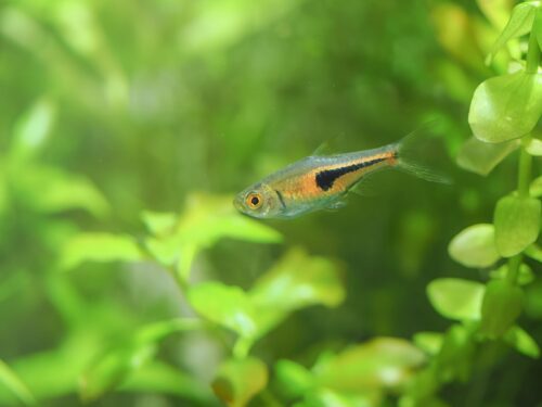 初心者に人気の魚で、水質への適応力が高く、穏やかな性格が特徴です。その美しい色合いが水草との相性も抜群です。