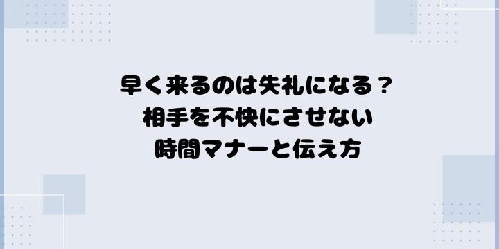 さらに、「早く来られて困るときのやんわりした伝え方」や「トラブルを防ぐための工夫」まで、日常でも使える実践的なマナーを紹介します。