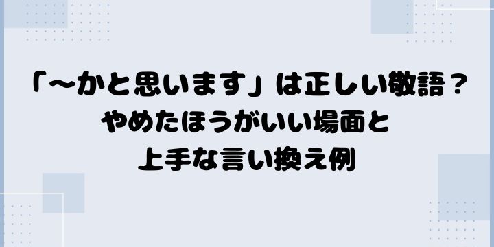 この記事では、「~かと思います」の正しい意味や使われる背景、似た表現との違い、そしてシーン別の上手な使い方をやさしく解説します。