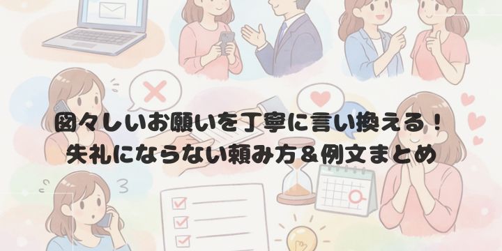 この記事では、図々しい印象を避けながら、きちんと頼みたいことを伝えられるように、言い換えの考え方とフレーズをまとめていきます。